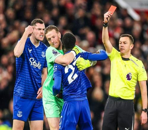 早报曼联0比1十人埃弗顿,盖耶内讧掌掴队友直红