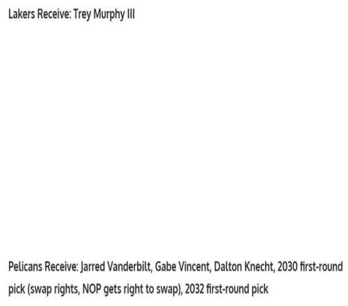 这笔交易方案基于此前名记Evan Sidery的报道,湖人一直有意得到琼斯与墨菲,两人都是顶级3D侧翼球员,完美符合湖人队的补强需求。